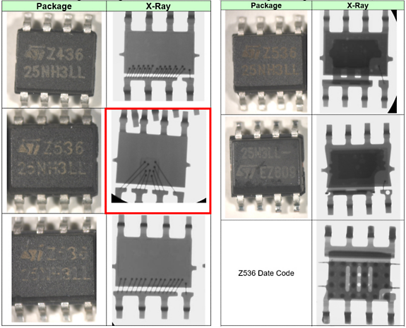 Figure 1. The Ansys Reliability Engineering Services team helped a customer determine that the cause of a product failure was a counterfeit MOSFET used in the design (shown in red). Using X-ray, the team identified the counterfeit by the size of the die, lead frame geometry, and wire bond configuration.