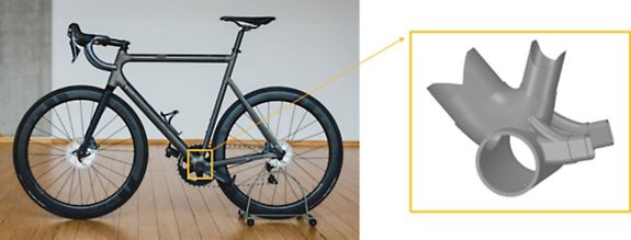 Figure 1. Brightlands 3D printed racing bike and bottom lug. Images courtesy of Brightlands Chemelot Campus.