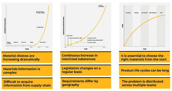 Two of the platform’s most sought after features are material selection and optimization. Engineers and designers can access a wealth of data to make smarter material choices, which reduces design errors, product failures, and overall costs, while targeting sustainability goals and complying with regulatory environmental standards.