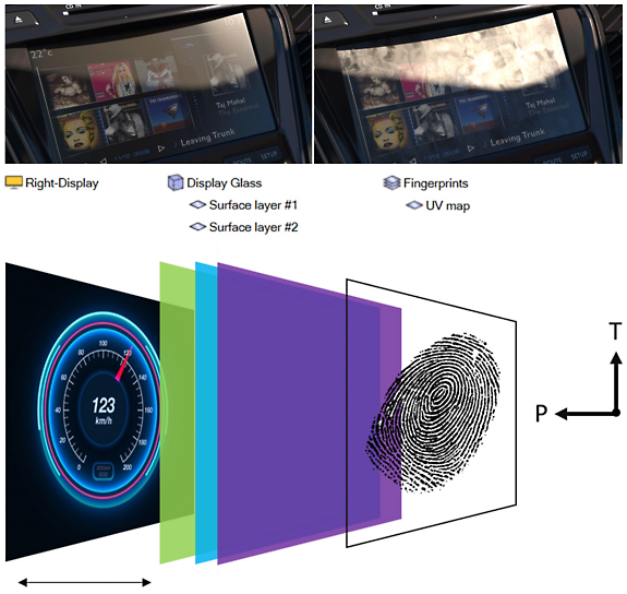 Figure 1: Human perception of display with fingerprints versus a clean display at a critical sun position.