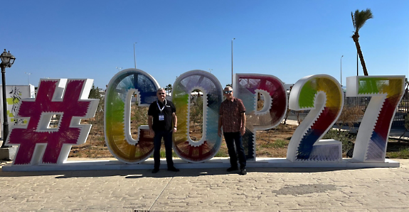 The author (right) and Ansys Program Director for Healthcare Solutions, Thierry Marchal, attended COP27 in Egypt.
