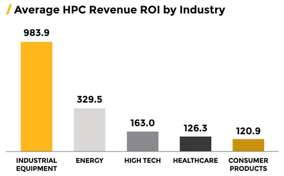 Average industry revenue ROIs per dollar invested in high-performance computing (HPC).