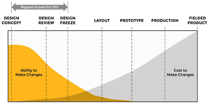 Implementing DfX early in the design phase ensures changes can be made quickly before prototype, saving time and costs.