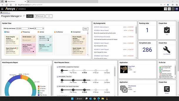 An example of the dashboard in Ansys Minerva simulation process and data management software